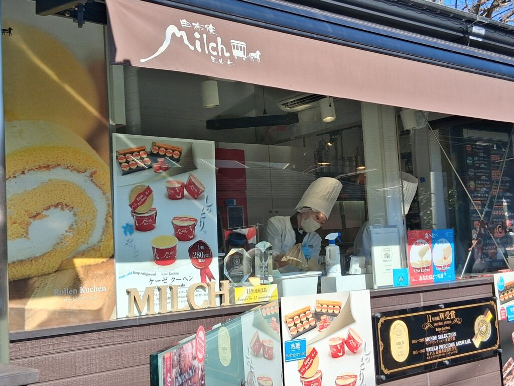 ちなみに下の写真は、由布院を代表するロールケーキ専門店で、名物の「Pロール」。ふわふわのスポンジと軽い生クリームのバランスが絶妙で、観光客にも地元の人にも人気。売り切れることが多いから、午前中に行くのがおすすめ。ゆふいんの森号にも販売しているそうだ。