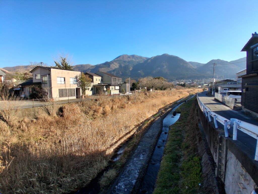 自然の中を湯の坪街道までグーグルマップを手に歩く。周りに観光客はいない。雄大な大分の自然と我々だけ。これぞ「旅」の醍醐味。